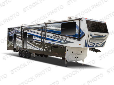 With any Cherokee Vengeance toy hauler fifth wheel by Forest River, you will find functionality and refined comfort at every turn! Each model features an 8' 6" wide body construction, high-gloss gelcoat fiberglass, and NTXT composite substrate for added durability. The MORryde 3000 suspension will make towing easier than ever, and there are additional MORryde features such as a hitch, extended handrail at the garage and entry door, and a MORryde pull-out tray in the exterior compartment. The 5,000 lb. tie-downs will help keep your gear secure, and the 30-gallon fuel station will keep your toys ready to go. Each toy hauler also includes luxury solid surface countertops throughout, luxury upgraded furniture, dual roller day/night shades in the living room, a glass shower enclosure, and LED lighting throughout to name just a few luxury features!