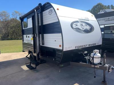Each one of these Forest River Cherokee Wolf Pup travel trailers and toy hauler are lightweight and easy to tow! They are fully self-contained with ample tank capacities, an abundance of storage space, and filled with at home amenities. The full bath and kitchen amenities will make life at the campground easier than ever, and the outdoor patio awning will provide an inviting outdoor space!